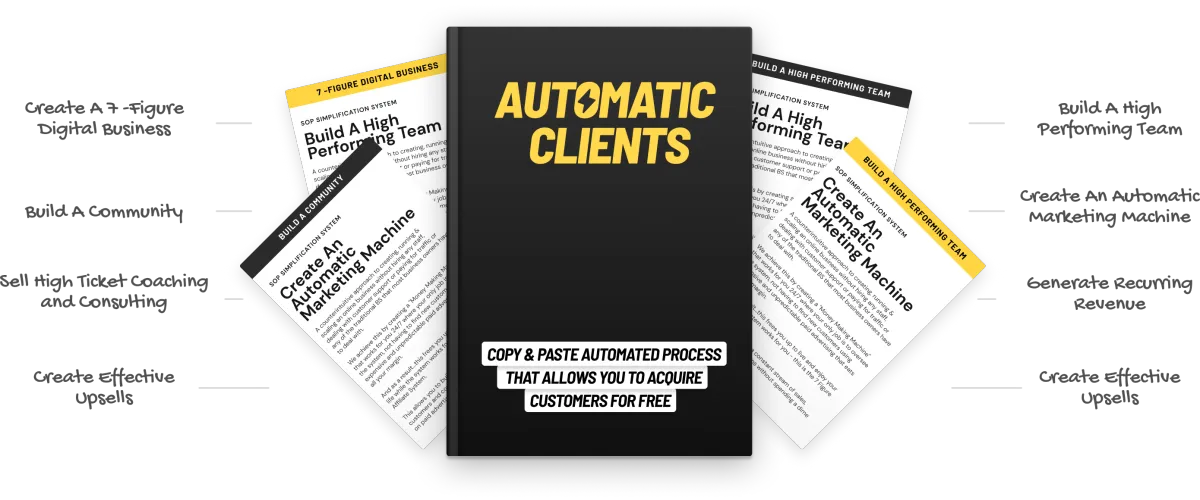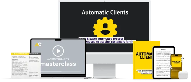 [INSERT ANSWER] You are getting a copy of the Automatic Clients ebook, available instantly. You are getting the highly praised 6+ hour Advanced Acquisition Theory course. You are getting our advanced Economics Calculator. You are getting our 2,854 Profitable Niches spreadsheet. You’re getting the 7-Day Fast Start video series, our best $200,000 Advertisement, access to our FB community, our 7-Figure Video Sales Letter script, and a 26-step Launch Checklist.